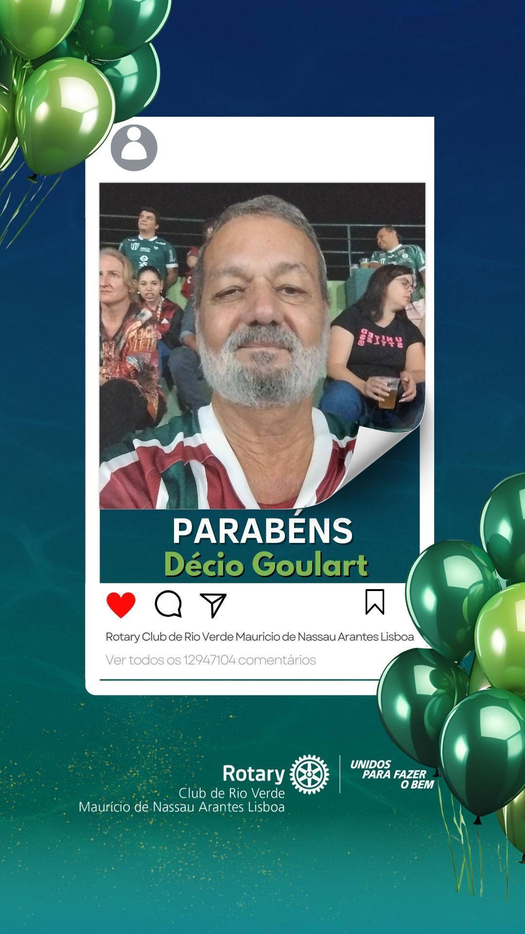 23 de janeiro – Aniversário do companheiro Décio Goulart. Os membros do Rotary Club Maurício de Nassau Arantes Lisboa desejam-lhe um feliz aniversário, com votos de saúde, felicidades e muitas realizações.
