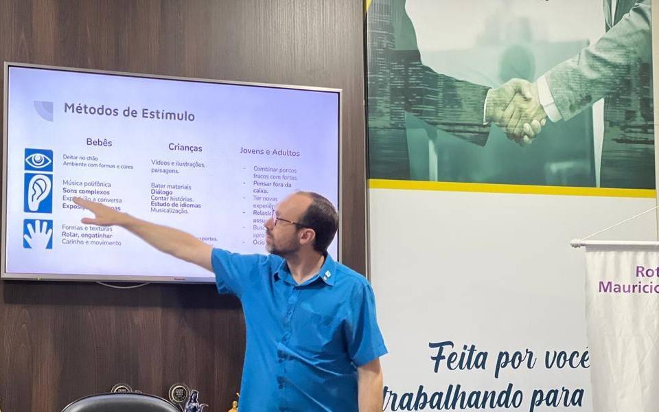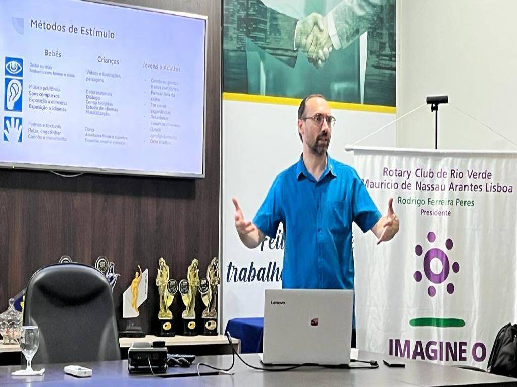 Os membros do Rotary Club de Rio Verde – Mauricio de Nassau Arantes Lisboa e convidados tiveram a oportunidade de assistir no auditório da Câmara de Dirigentes Lojistas – CDL Rio Verde, uma palestra ministrada pelo companheiro Alisson de Moura, o professor trouxe o tema: ESTIMULANDO INTELIGÊNCIA.