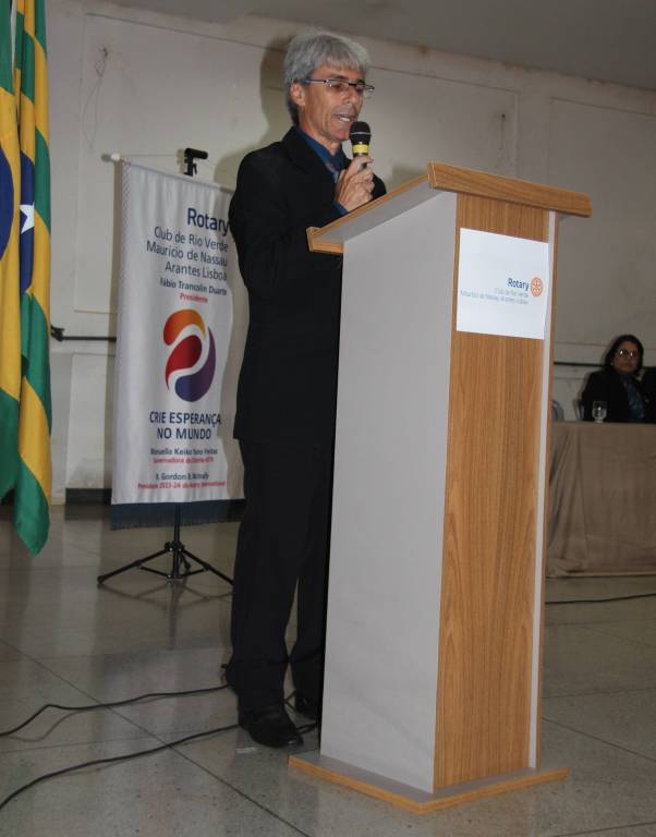 Fábio mencionou a lema rotário para a Gestão 2023-24, apresentada pelo Presidente Eleito do Rotary International, Gordon McInally, que é "CRIE ESPERANÇA NO MUNDO". O objetivo do clube para esse período é restaurar a esperança e contribuir para um mundo melhor.