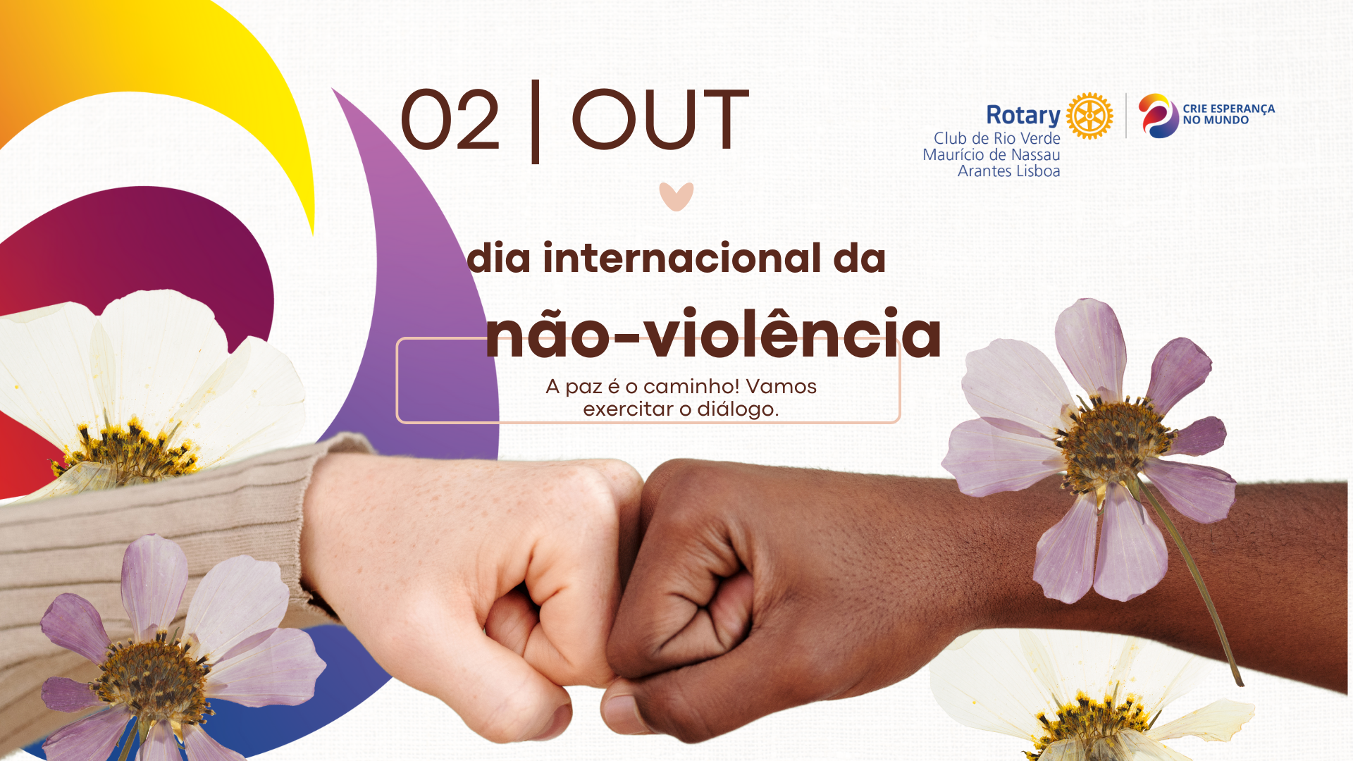 Hoje, o Rotary Club Maurício de Nassau Arantes Lisboa se une a pessoas de todo o mundo para celebrar o Dia Internacional da Não Violência. É um momento de reflexão e de reafirmar nosso compromisso em promover a paz, a tolerância e o respeito mútuo em nossa comunidade e além.