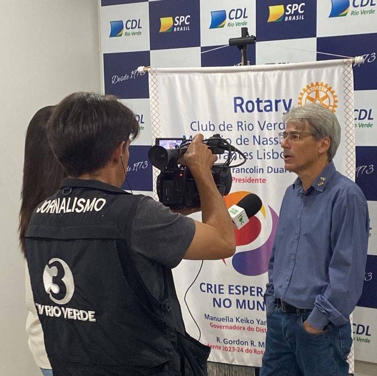 Na manhã desta quinta-feira (11), Fábio Trancolin, presidente do Rotary Club Maurício de Nassau Arantes Lisboa, concedeu uma entrevista para a equipe da TV Rio Verde Canal 3 HD, com a repórter Ellen Nascimento e o cinegrafista Celso Ferrari.
