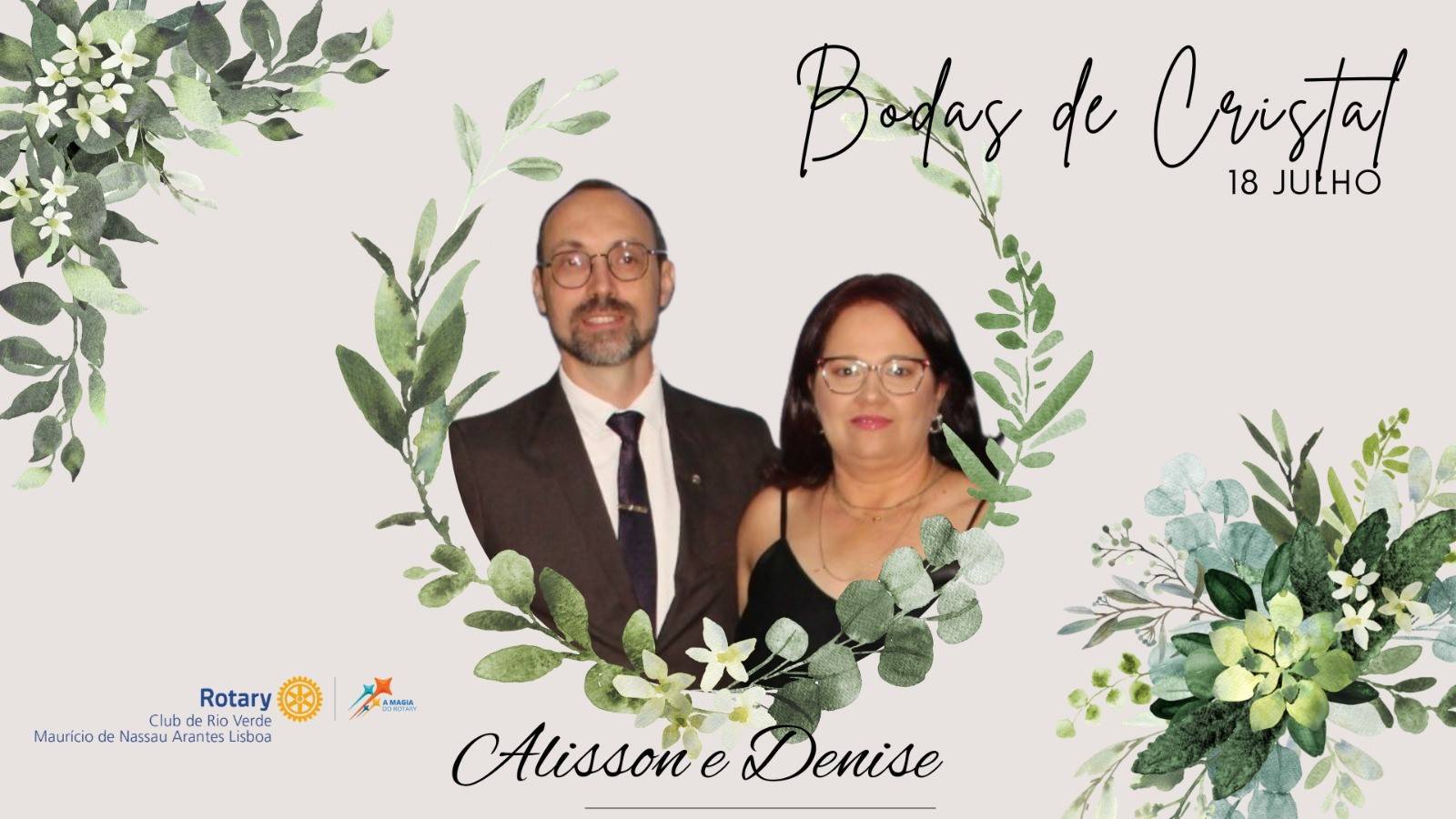 Nesse dia 18 de julho, nossos queridos companheiros presidente Alisson & Denise completam 15 anos de casados, celebrando suas Bodas de Cristal. Estas bodas trazem consigo dois significados importantes para esta fase do matrimônio.