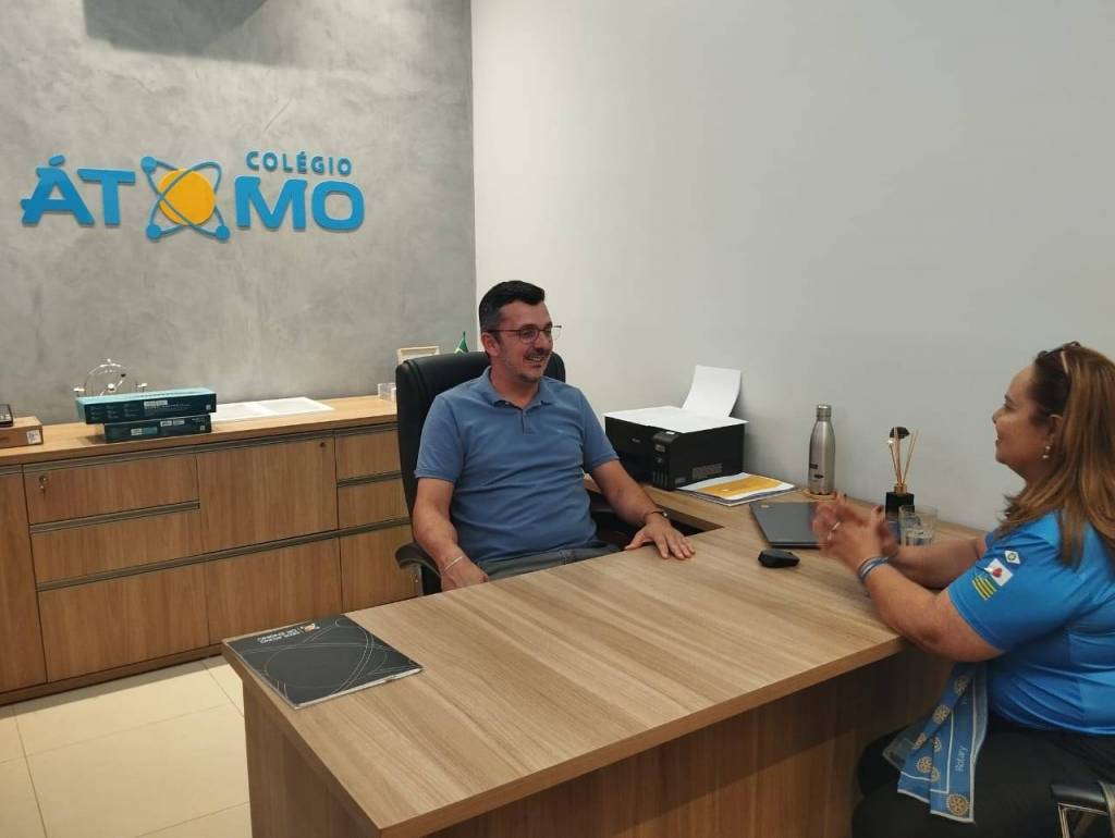Encerrando o dia de visitas, a governadora esteve na Rede Átomo de Ensino, acompanhada pelos membros do Rotary Club Maurício de Nassau Arantes Lisboa. A comitiva contou com a presença do presidente Alisson de Moura, Denise Marcelane e Fábio Trancolin. O encontro reforçou a parceria entre o Rotary e instituições educacionais na promoção da educação de qualidade.
