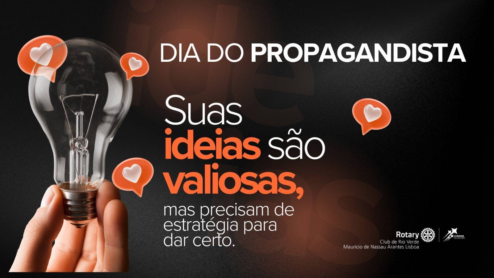O propagandista é um profissional fundamental na divulgação de produtos ou serviços, atuando como um elo entre as empresas e os consumidores. No Rotary Club – Mauricio de Nassau Arantes Lisboa, temos o orgulho de contar com o membro Wander Iwata, que utilizava sua voz de maneira eficaz na promoção de produtos de diversas áreas. Seu talento e dedicação à comunicação contribuíram significativamente para o reconhecimento e a valorização das marcas e empresas que ele através da voz divulga. Neste dia, celebramos o trabalho dos propagandistas e a importância da comunicação na construção de relacionamentos e na promoção de negócios.