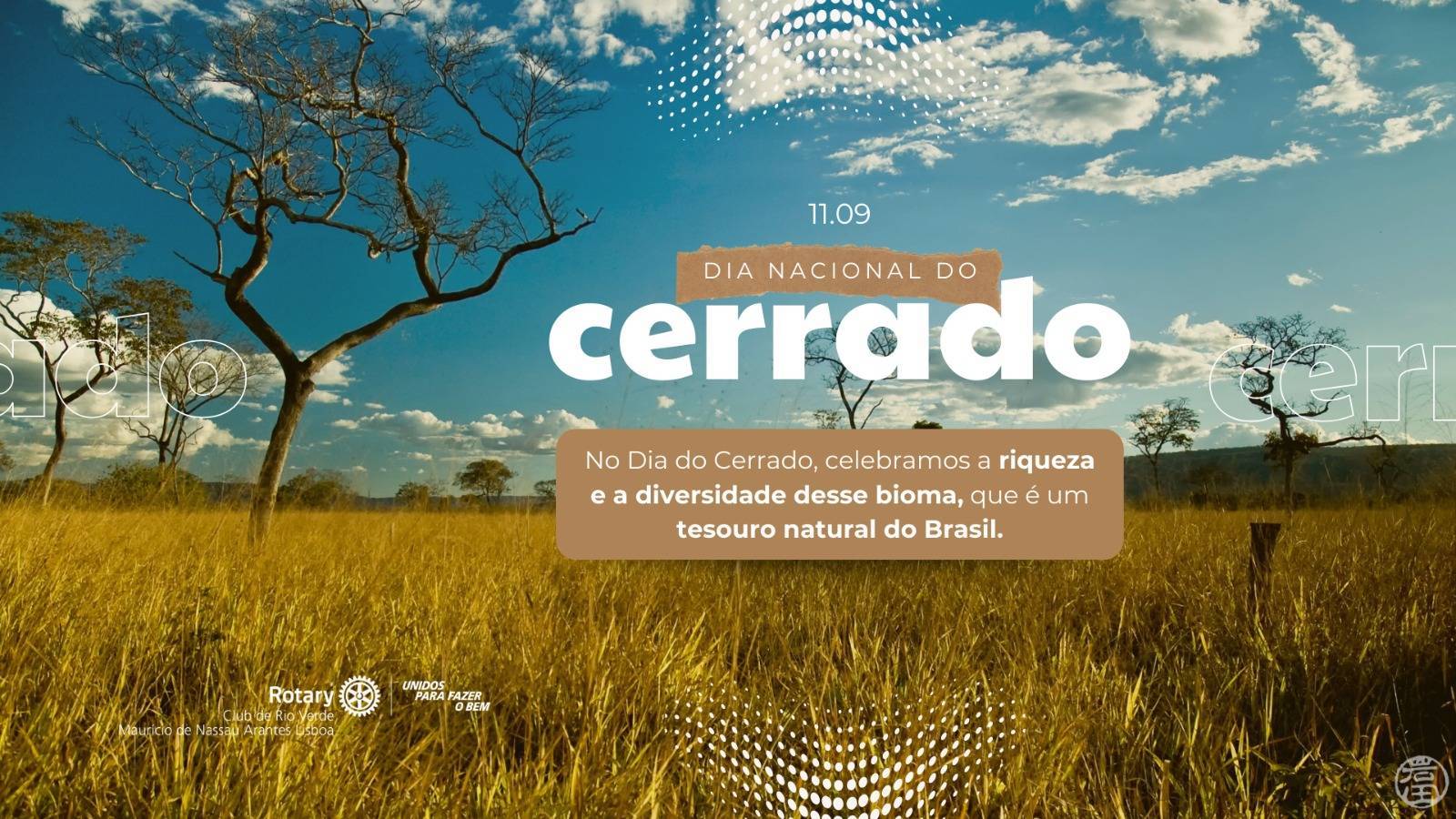 O Rotary Club Maurício de Nassau Arantes Lisboa celebra esta data especial, chamando atenção para a importância do Cerrado, um dos biomas mais ricos do planeta, fundamental para o equilíbrio ambiental e para a preservação das águas do Brasil.