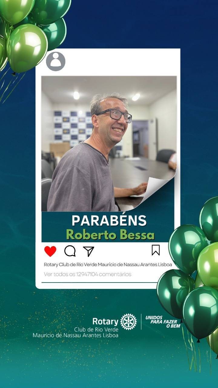 Hoje celebramos mais que uma data no calendário: celebramos o dia nosso companheiro Roberto Bessa. Que este novo ciclo venha repleto de saúde, alegria, realizações e da certeza de que sua trajetória faz diferença — no Rotary, na comunidade e na vida de todos nós.