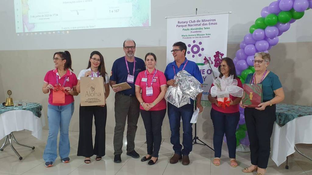 Foi realizado no dia 03 de junho o Fórum Rotário da Área I, o Fórum “Tributo a Jáisson Elizeu Bairros”. Jovem rotariano, que era o Governador Assistente da Área I, nos deixou precocemente no dia 31 de março de 2023. A Área I é composta pelos clubes: Rotary Club de Mineiros-Parque Nacional das Emas, Rotary Club de Alto Garças, Rotary Club de Alto Taquari, Rotary Club de Chapadão do Céu, Rotary Club de Mineiros, Rotary Club de Mineiros-Aroeira, Rotary Club de Mineiros-Parque Nacional das Emas, Rotary Club de Santa Rita do Araguaia/GO e Alto Araguaia/MT. Todos os clubes da Área, com as respectivas Casas da Amizade, estavam representados. O Fórum contou com 168 participantes e teve como facilitadores a Jovem Ranyele Vilela, Representante Distrital do Rotaract, o Companheiro Rogério Mesquita, do Rotary Club de Catalão e o Governador designado 2025-26 Fábio Fayad, associado ao Rotary Club de Goiânia. Compartilhamento de conhecimento rotário, motivação e emoção marcaram o fórum. Relembrar e enaltecer o companheiro Jáisson era necessário, pois ele teve uma atuação brilhante no Rotary, bem como na sua vida profissional, familiar e na sociedade. A Governadora indicada Marilene Rezende continuou, como Governadora Assistente da área I, colaborando com o Distrito 4770 e com a Coordenadora Assistente das Casas da Amizade Ubaldina Resende. Além dos Clubes já citados, esteve representado também, o Rotary Club de Rio verde 5 de Agosto e o Rotary Club de Goiânia Centenário.