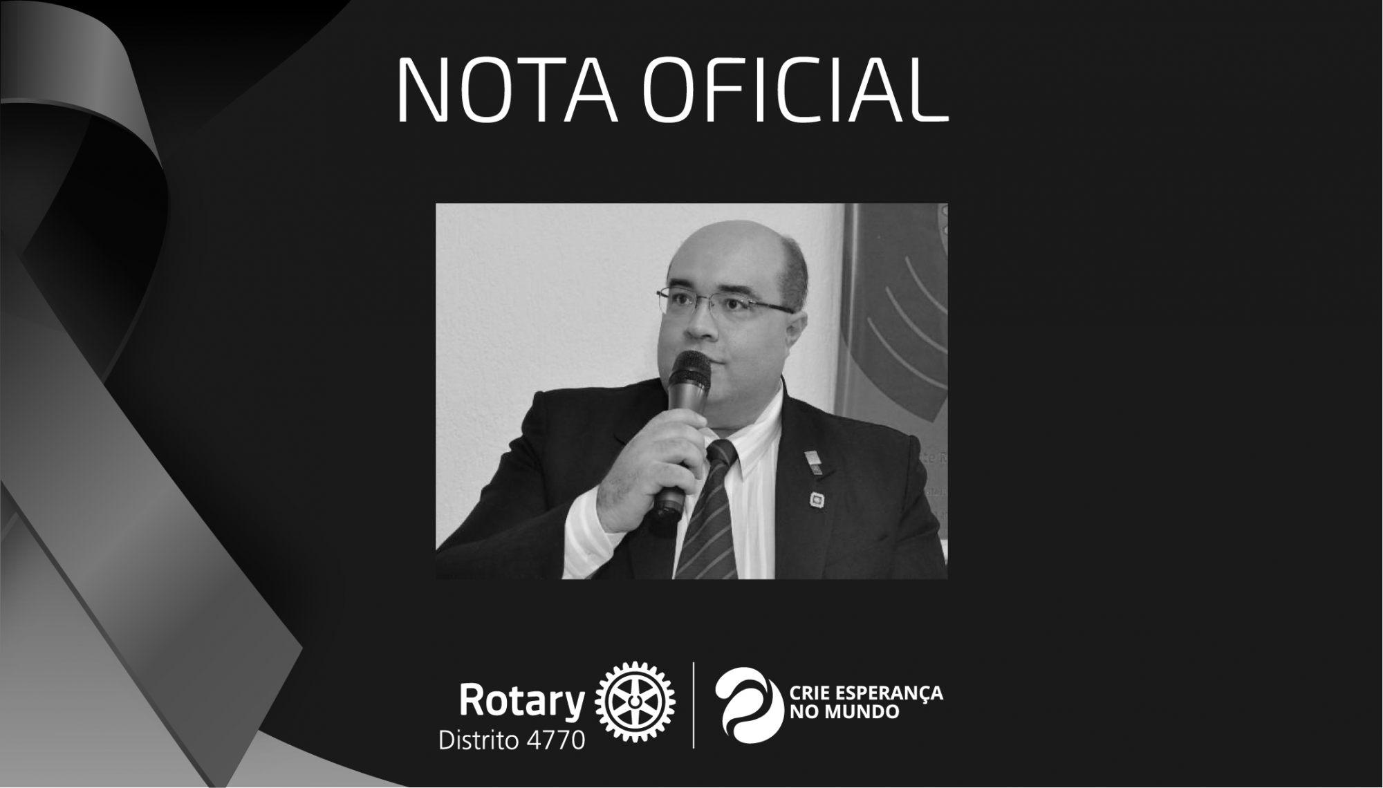 A Governadora 2023-2024 do Distrito 4770 de Rotary International, Manuella Keiko Yano Freitas, no uso de suas atribuições regimentais, vem com extremo sentimento de pesar, comunicar o falecimento de Dr. Geraldo Eustaquio da Costa Júnior, membro do Rotary Club de Mineiros, ocorrido na noite de 20 de maio de 2024. Externando os mais sinceros sentimentos de pêsames à família, aos membros do Rotary Club de Mineiros e a toda a família rotária, solicitando aos Senhores Presidentes que, em caso de eventos ou reuniões, procedam ao ato de homenagem póstuma ao estimado companheiro. Por ser verdade, firma o presente, determinando a publicação do presente no site oficial do Distrito, envio a todos os Governadores Assistentes e clubes do distrito, para que se faça chegar à toda família rotária.