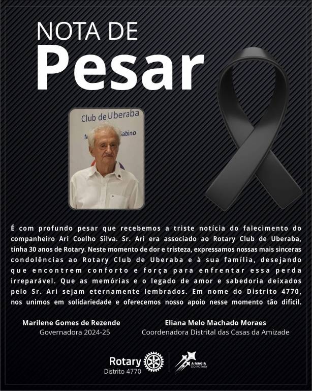 condolências ao Rotary Club de Uberaba e à sua família, desejando